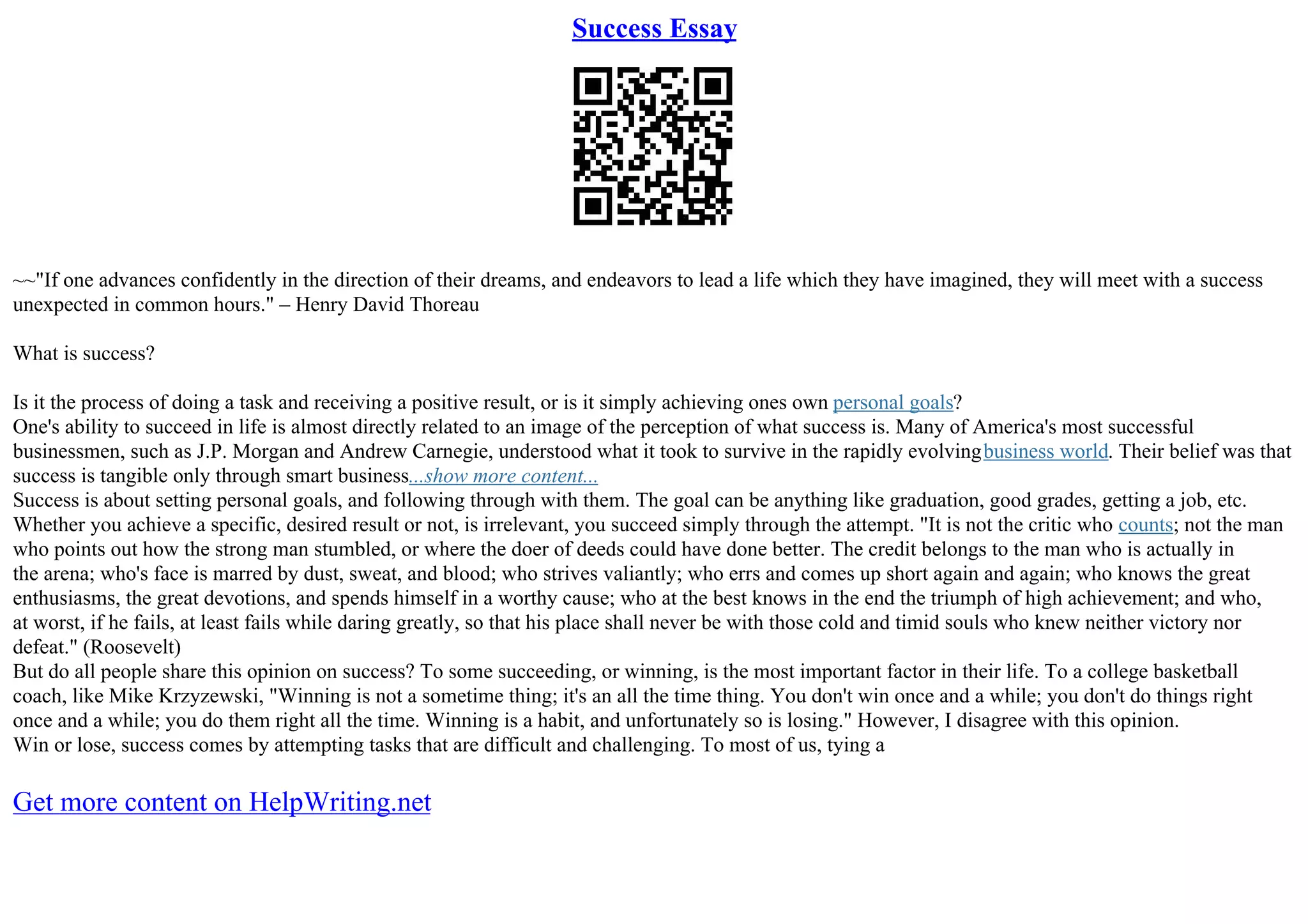 This document discusses different perspectives on defining and achieving success. It provides examples of success being defined as achieving personal goals, acquiring wealth and status, or finding happiness. It also discusses three main forms of success: professional, social, and personal. Professionally, success involves achieving career goals and financial stability. Socially, it involves having good relationships and giving back to the community. Personally, it means being happy and stress-free. Hard work is presented as a common factor across all definitions and forms of success.