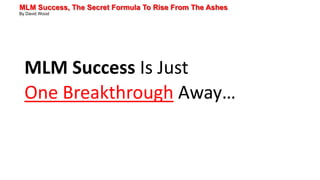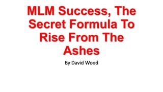 The document discusses the secret formula for MLM success according to David Wood. The three key points of the formula are: