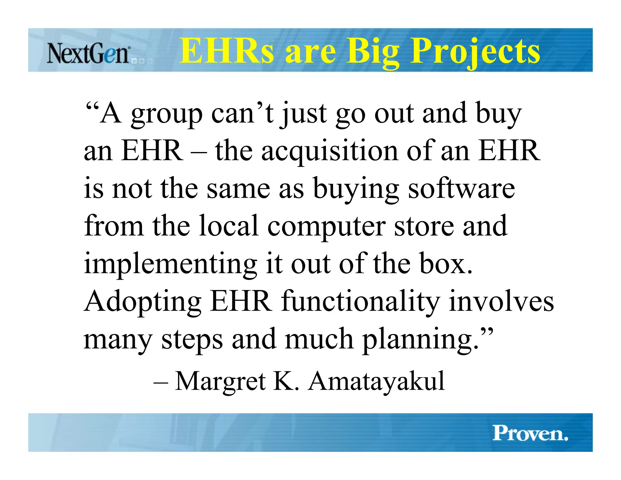 Implementing an EHR is a complex project that requires extensive planning and involvement from all stakeholders. Key steps include defining goals and metrics, analyzing workflows, selecting an appropriate vendor, and providing comprehensive training for end users. A successful implementation follows best practices such as establishing executive support, implementing in increments, thoroughly testing the system, and providing ongoing support and feedback after going live. Shadowing providers during training and post go-live periods is critical to ensure adoption and maximize benefits of the new EHR system.