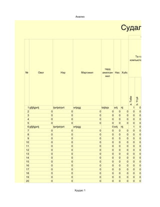 Хүснэгтэн мэдээлэл боловсруулах OpenOffice.org Speadsheet програм дээр дүнгийн хүснэгт гэх мэт су