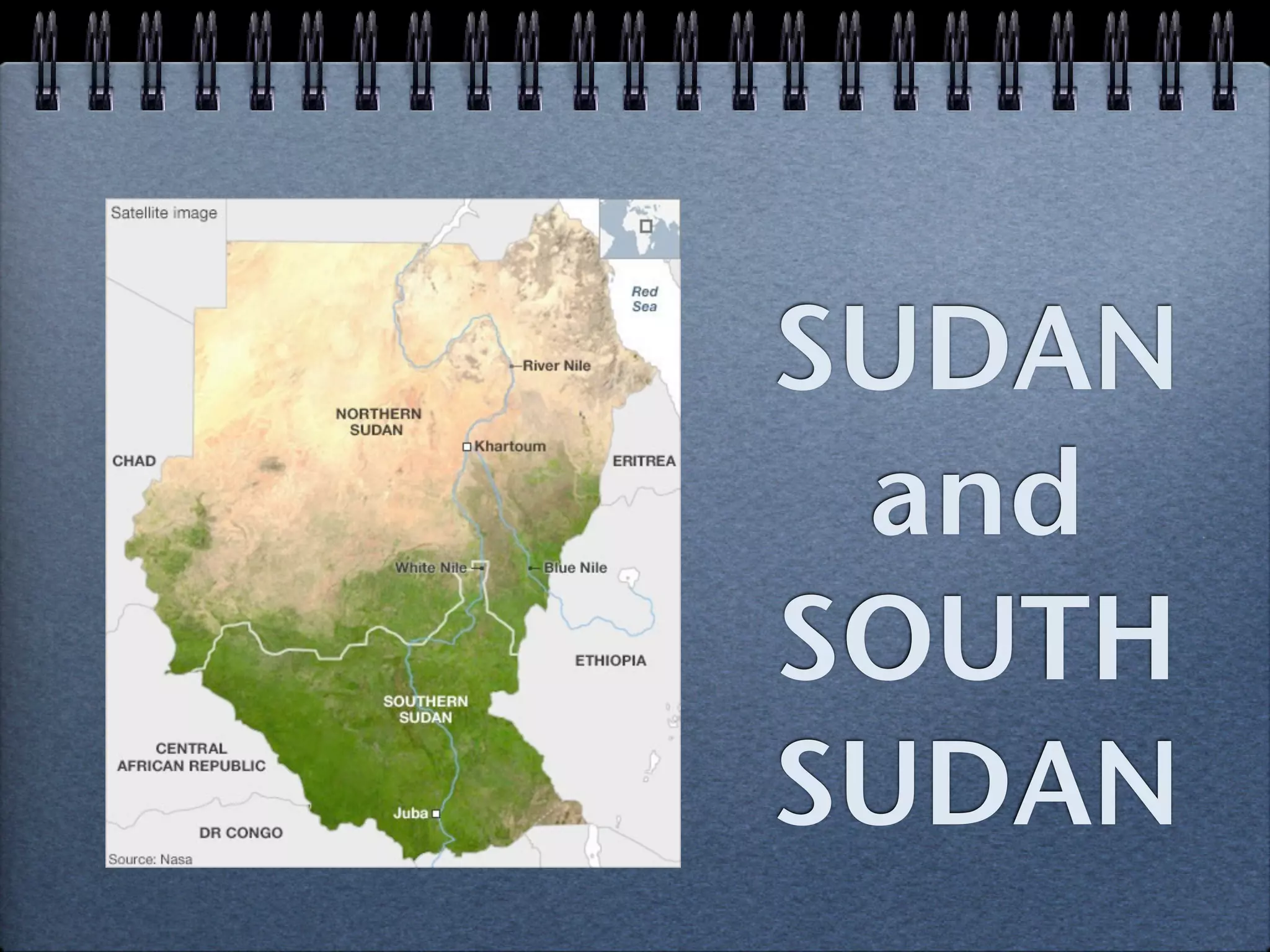 1. Sudan was originally colonized by Great Britain, who split it into a northern and southern province. The north accepted colonization and benefited from investments in infrastructure, while the south resisted and remained poor.