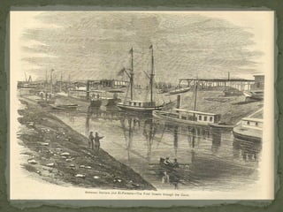 The Suez Canal, opened in November 1869 and built by Ferdinand de Lesseps, connects the Red Sea to the Mediterranean Sea, stretching 192 km and facilitating about 7.5% of world sea trade today. Petroleum products accounted for 16% of canal cargo in 2009, with significant northbound and southbound oil transits. The canal has undergone enhancements to accommodate larger vessels, although it still cannot handle the biggest crude oil tankers.