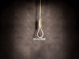 The document discusses various perspectives on suicide from an evolutionary standpoint. It explores how suicide may be adaptive by reducing the burden an individual places on their kin, allowing more resources for relatives' survival and reproduction. However, suicide is also examined as potentially non-adaptive when driven by loss of self-esteem, mental illness, or as a cry for help. The document also reviews research finding genetic factors and social influences involved in suicide risk.