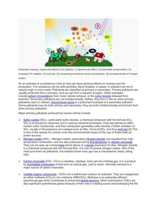 Air pollution can have significant negative health effects and is caused by a variety of natural and man-made sources. It involves the introduction of harmful substances like particulate matter, biological molecules, and gases into the atmosphere. Both outdoor air pollution from sources such as transportation, industry, agriculture, and indoor air pollution from sources like building materials and cooking can damage human health. Long-term exposure to air pollutants is linked to increased risk of diseases such as heart disease, lung cancer, and stroke as well as premature death. Reducing air pollution involves regulating emission sources and exposing populations to lower pollution levels.