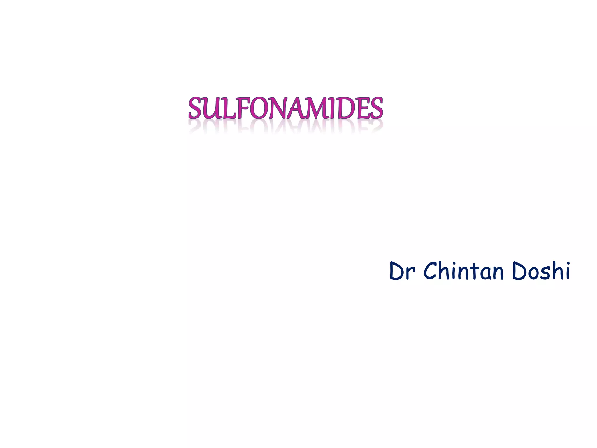This document discusses sulfonamide antibiotics. It provides information on different types of sulfonamides including short, intermediate and long acting agents. It describes their mechanisms of action, antimicrobial spectrum, pharmacokinetics, uses, and side effects. It also discusses fixed dose combinations like cotrimoxazole and its uses for various infections.