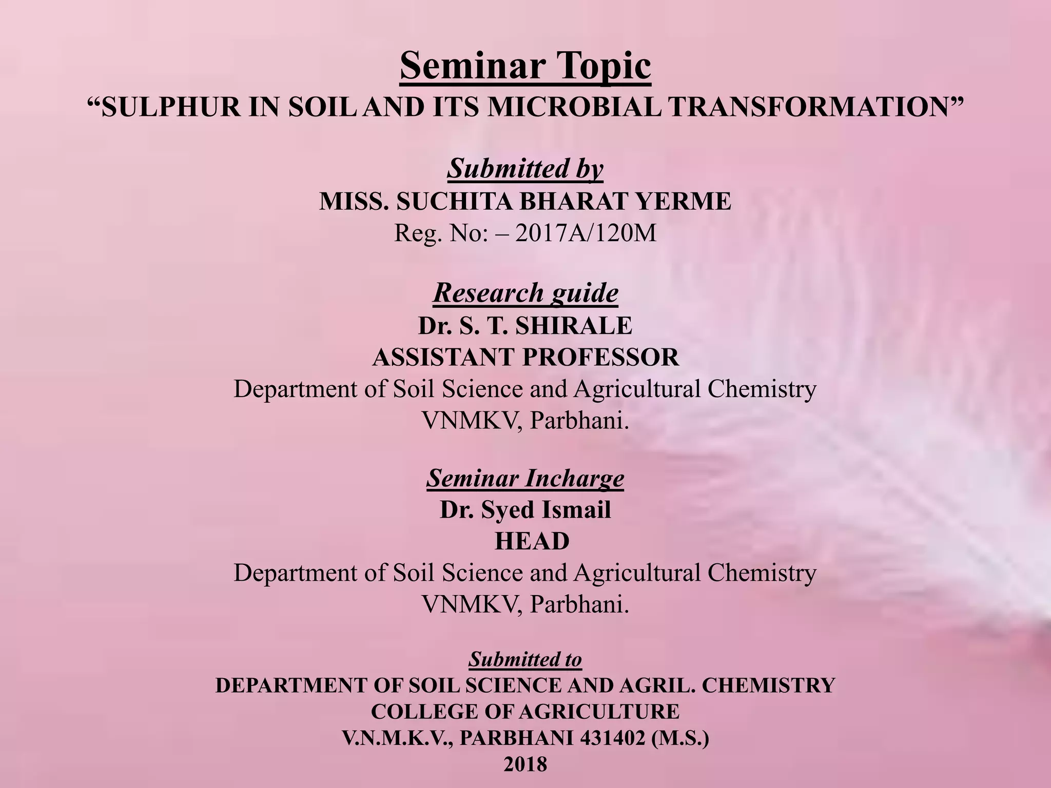 The document discusses the role of sulfur in soil, detailing its forms, transformations, and importance for plant nutrition and microbial activity. It highlights that a majority of soil sulfur exists in organic form, with only a small fraction in inorganic sulfate form, which is essential for plant absorption. Various factors, such as soil conditions and microbial processes, affect the availability of sulfur to plants and emphasize the significance of sulfur in crop health and soil management.