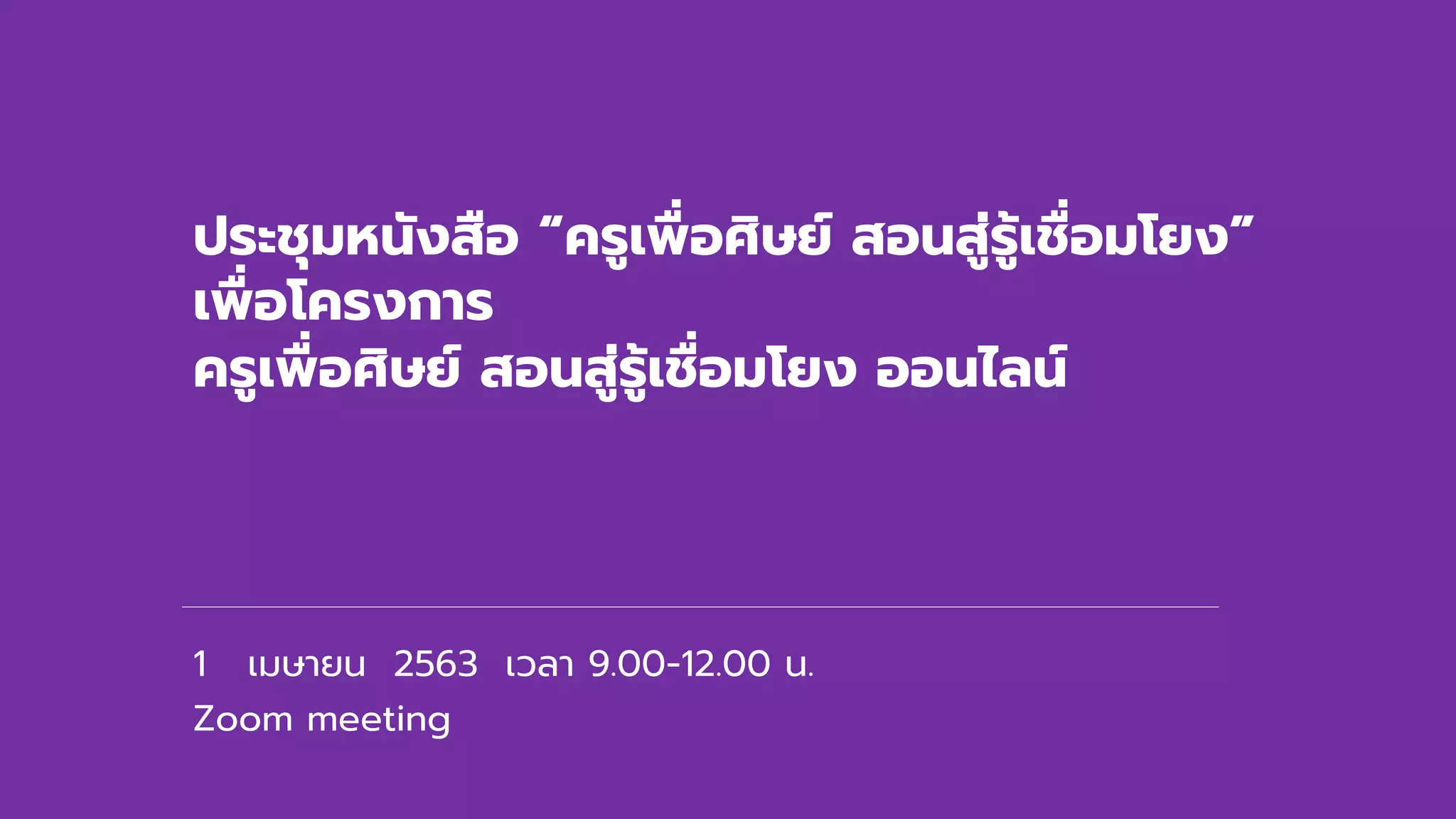 ประชุมหนังสือ “ครูเพื่อศิษย์ สอนสู่รู้เชื่อมโยง” เพื่อโครงการ ครูเพื่อศิษย์ สอนสู่รู้เชื่อมโยง ออนไลน์ 1 เมษายน 2563 เวลา 9.00-12.00 น. Zoom meeting