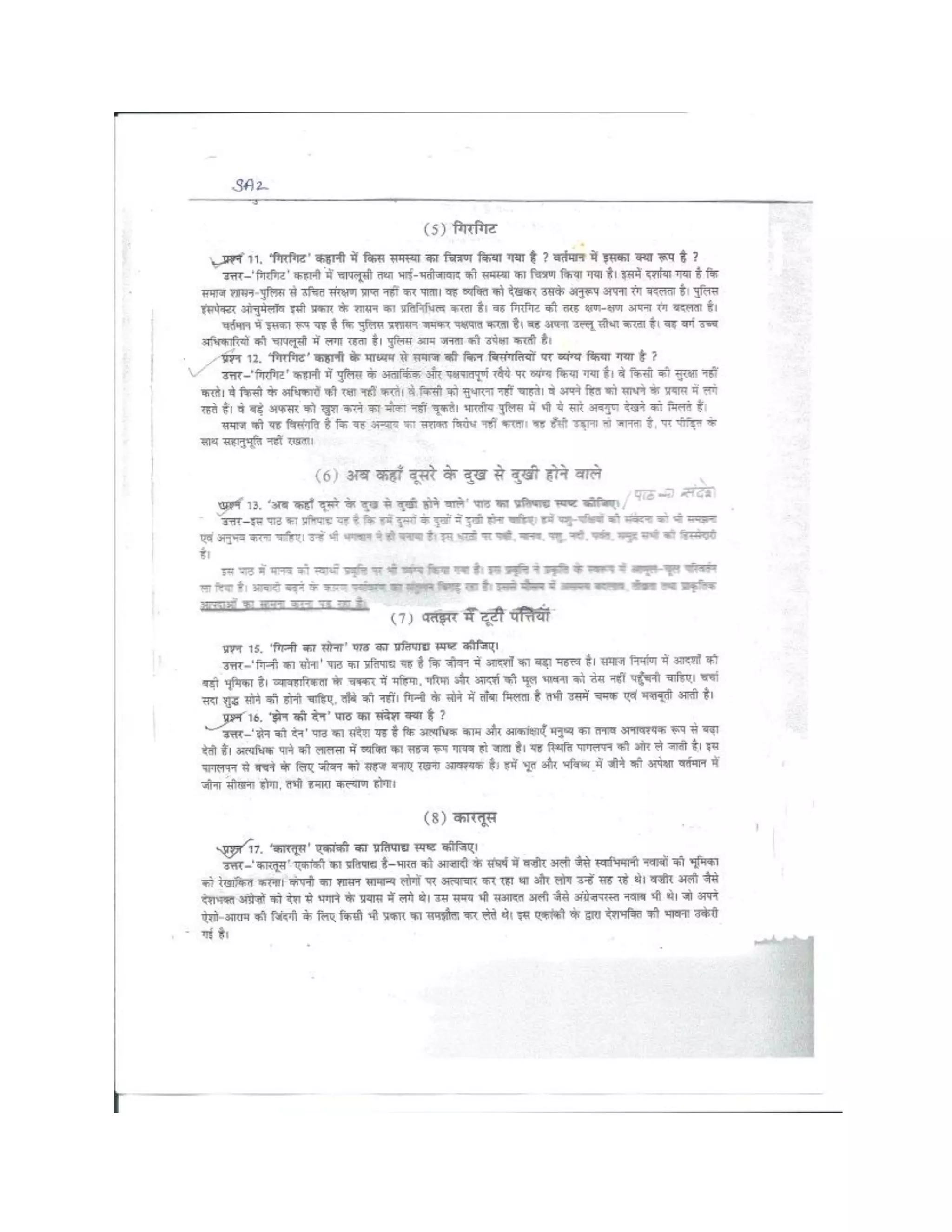 सरे पाठ के मूल भाव