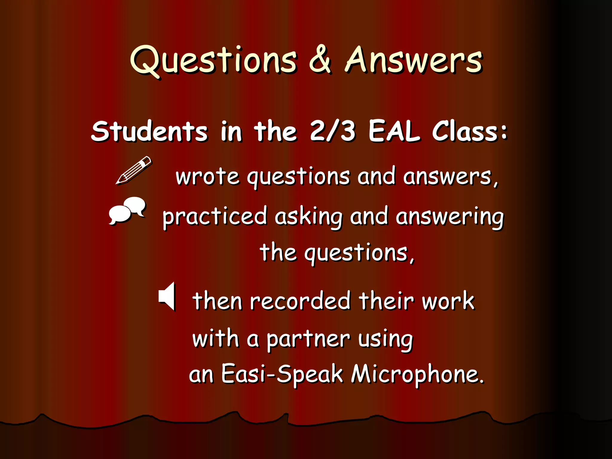 Students in an EAL class wrote questions and answers, practiced asking and answering them with partners, and recorded their conversations. The questions and answers covered topics like what the students wanted, where they went, what they were doing, and who their friends were.