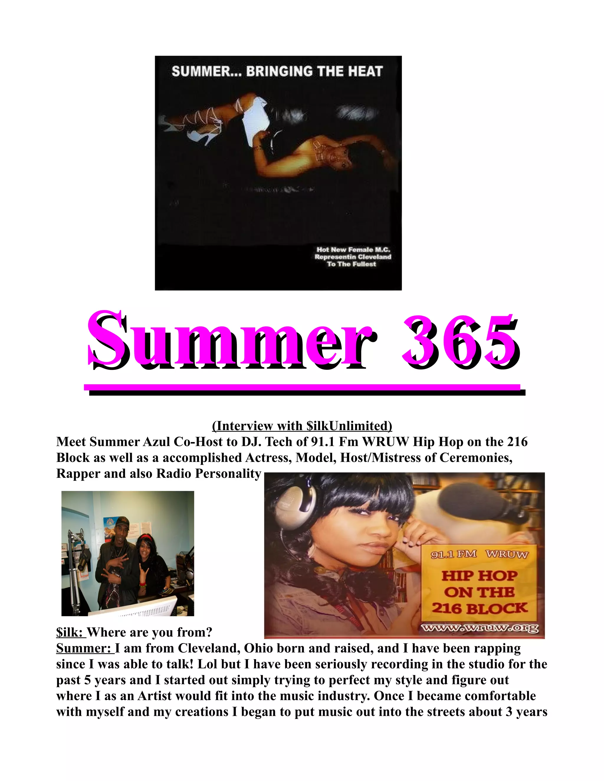 Summer Azul, a Cleveland-born rapper and actress, shares her journey in music and theater, having rapped since childhood and written all her songs to authentically express her experiences. She has released about 50 songs and is currently searching for a major recording deal to expand her reach. With aspirations to return to theater and grow her career, Summer aims to positively impact lives through her entertainment endeavors.