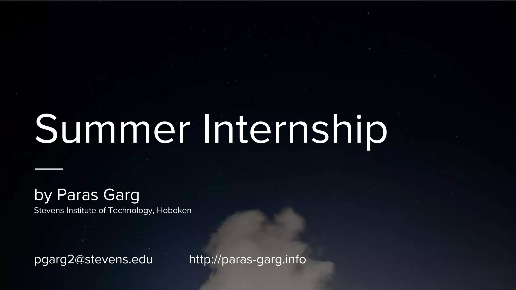 Paras Garg interned as a web developer/designer at Kairos Italy Theater in New York for the summer. Their responsibilities included designing and developing the theater's website, migrating it to be mobile compatible, and performing search engine optimization. They used technologies like JavaScript, HTML, CSS, PHP, Bootstrap, jQuery, MySQL, and WordPress to complete tasks like user interface development, mobile front-end development, and on-page/off-page SEO optimization.