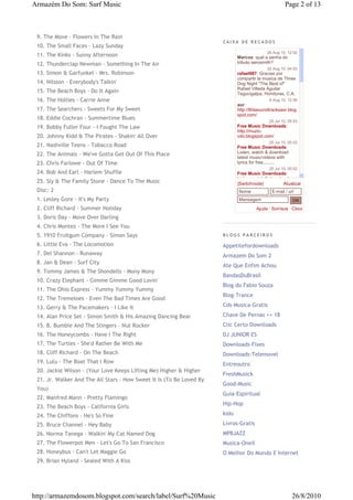 This document is a blog post from Armazém Do Som summarizing two compilation CDs titled "The Best Sixties Summer Party... Ever". The first CD contains 29 songs from artists like The Beach Boys, Martha Reeves & The Vandellas, and Simon & Garfunkel. The second CD contains another 29 songs from artists including Lesley Gore, Cliff Richard, and The Beach Boys. Rapidshare links are provided to download the compilation in two parts.