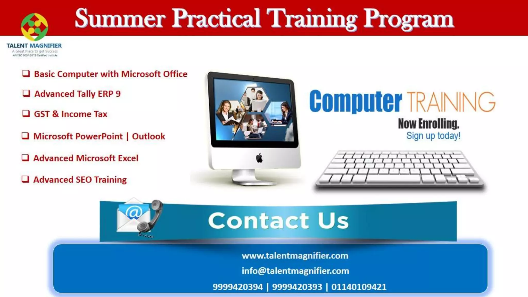 The document provides contact information for Talent Magnifier, including phone numbers, email, and website. It also includes the physical address located in New Delhi. This information is essential for reaching out to the company.