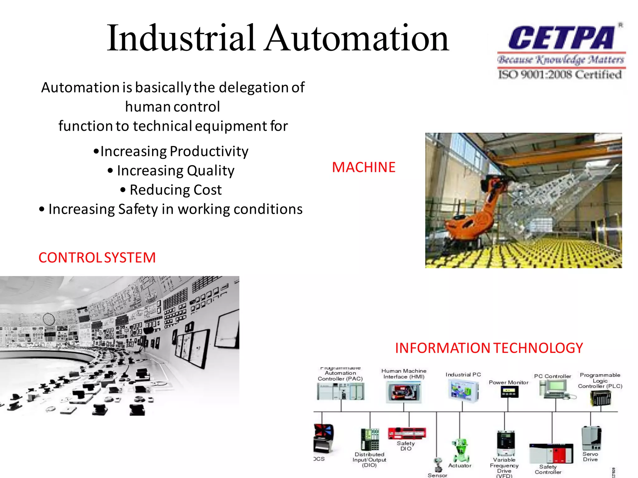Industrial automation involves delegating human control functions to technical equipment to enhance productivity, quality, and safety while reducing costs across various industries, from agriculture to space technology. Programmable Logic Controllers (PLCs) play a crucial role in automating processes, having evolved to replace older systems like mechanical relays, and are now integral in sectors including manufacturing, aerospace, and research. The implementation of automation systems simplifies complex controls, improves efficiency, and enhances the ability to monitor and adjust processes in real-time.