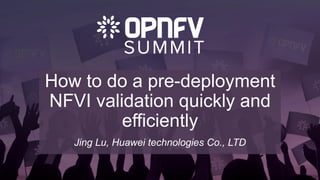 The document outlines a methodology for pre-deployment validation of Network Functions Virtualization Infrastructure (NFVI) to ensure it meets the requirements for Virtual Network Functions (VNFs). It emphasizes the importance of early detection of faults and bottlenecks using simple test cases and provides a flexible testing framework called Yardstick for verifying infrastructure compliance. Additionally, it includes references to various test cases and metrics for assessing NFVI performance.