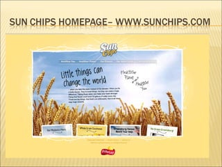 The Sun Chips brand launched in 1991 as a healthier snack alternative and saw growing popularity in the early 2000s. To expand its appeal, Sun Chips launched the "Live Brightly" campaign in 2006 focusing on small steps consumers can take to live more positively. The campaign promoted both healthier eating and environmental sustainability. It was a success, driving 17.6% sales growth in 2008 and tripling household penetration within four years.