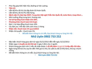 Dự án khu đô thị Sun City do Công ty Cổ phần Đầu tư Thanh Nhựt triển khai, nằm trên tổng diện tích 11 hecta tại huyện Nhà Bè, bao gồm 243 căn nhà liên kế và 14 biệt thự với tổng vốn đầu tư 120 tỷ đồng. Dự án có vị trí thuận lợi, cách trung tâm quận 1 khoảng 10 km và gần các tiện ích như bệnh viện, trường đại học, và khu thương mại. Khách hàng có thể thanh toán linh hoạt và nhận nhiều ưu đãi hấp dẫn khi giao dịch trong thời gian khuyến mãi.