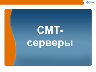 The document discusses new server technologies including chip multi-threading (CMT) and multi-core processors. It provides an overview of Sun Microsystems' SPARC Enterprise server products that utilize CMT and multi-core UltraSPARC T1, T2, and Victoria Falls processors. These include rackmount and blade server form factors with increasing processing power, memory capacity, I/O capabilities and virtualization support over time.