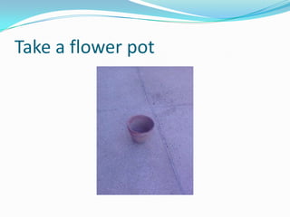 A student describes how to make a simple sundial using a flower pot, mud, and a stick to tell time without a clock or watch. The stick is placed in the pot filled with mud and the shadow it casts is marked on the ground every hour to indicate the time based on the sun's position.