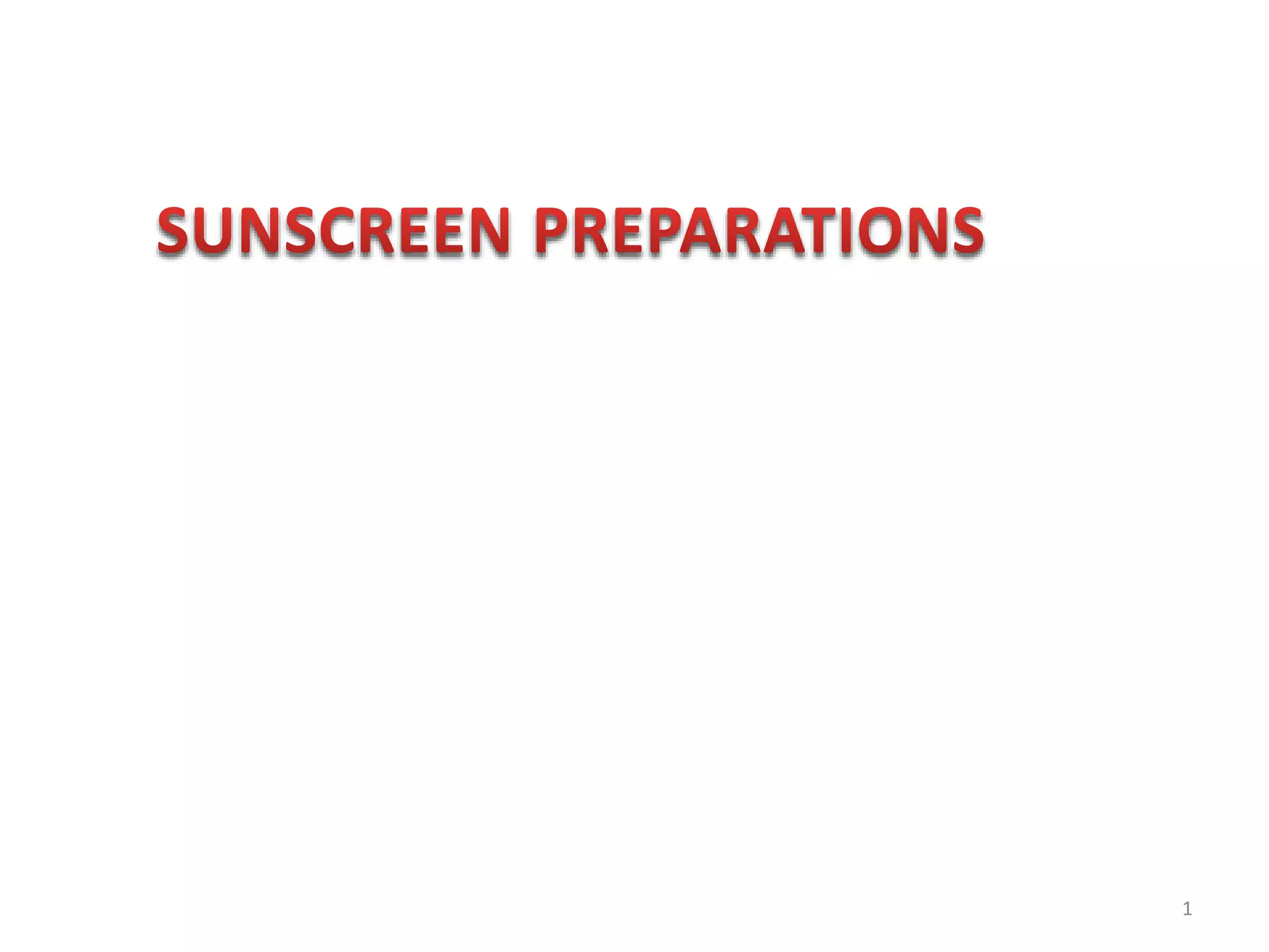This document discusses the effects of sun exposure and properties of sunscreens. Moderate sun exposure provides benefits like vitamin D synthesis, but excessive exposure can cause sunburn, skin damage, and skin cancer. Effective sunscreens contain organic or inorganic agents that absorb UV rays, along with emollients and waterproofing agents. They are formulated as creams, gels, or other products. Sunscreens are rated by their sun protection factor (SPF), with higher SPF providing more protection.