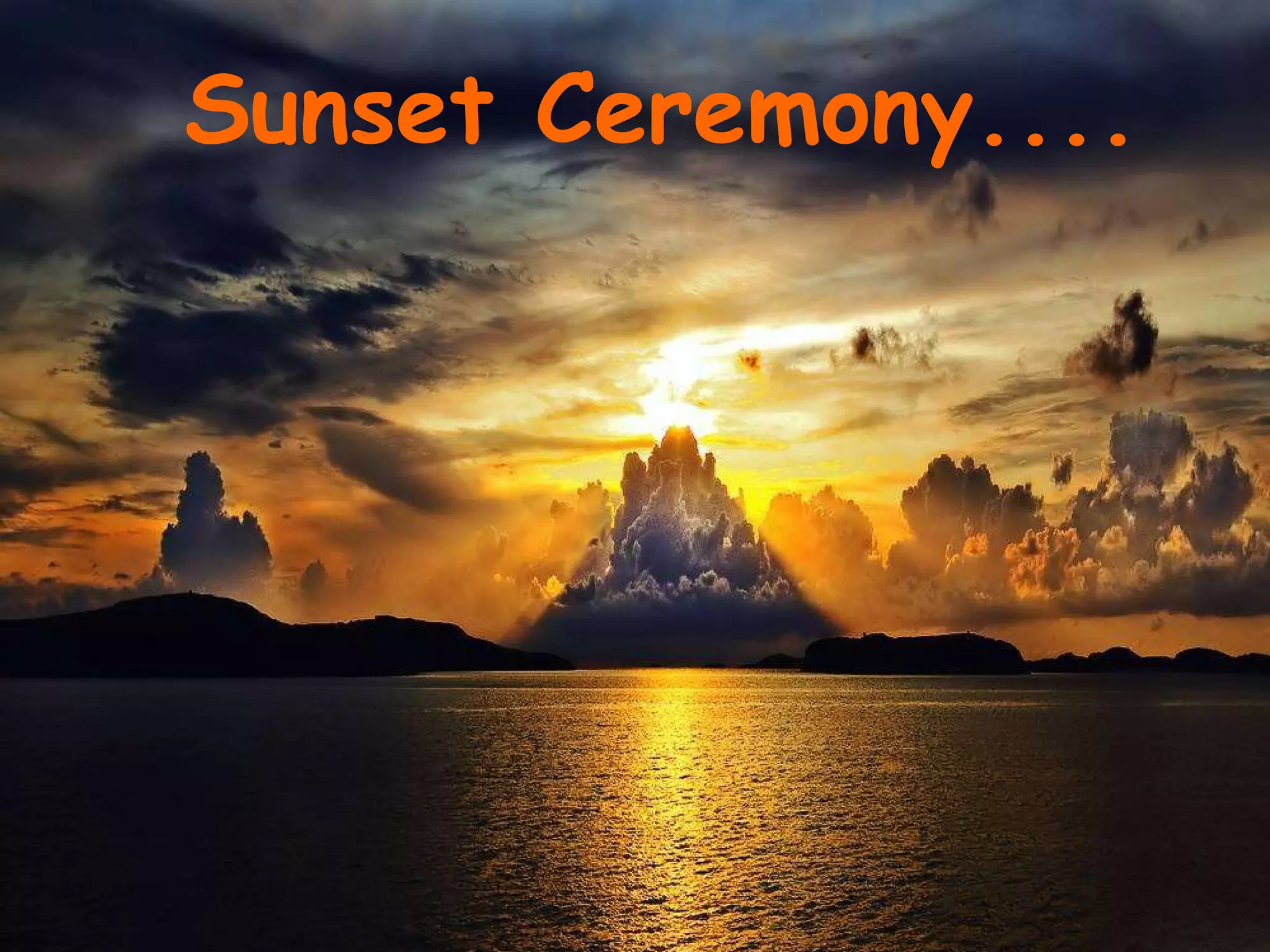The document describes a sunset ceremony with accompanying music. It mentions the ceremony and music are called "Sunset Ceremony" and were created by David and Steve Gordon. The document ends by stating the user can keep listening to the music or press 'Esc' to exit.