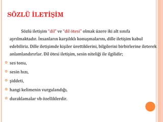 Sözlü iletişim“dil” ve “dil ötesi” olmak üzere iki alt sınıfa