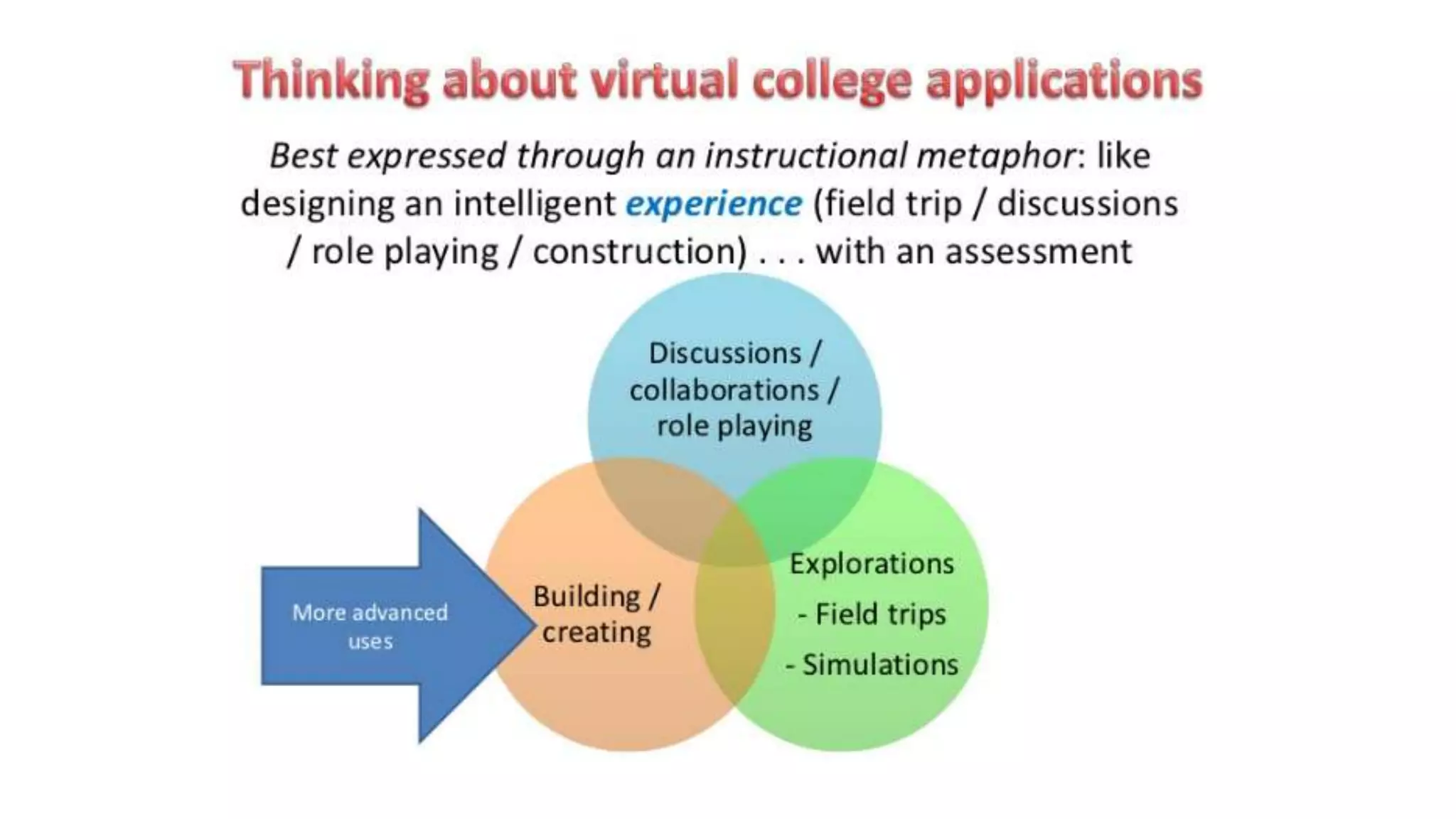 The document discusses the use of virtual reality (VR) in creating engaging learning environments and online communities, highlighting the instructor's experiences from Second Life to open-source platforms. It covers various applications in education, including teacher training and K-12 STEM, and emphasizes community building, collaboration, and project-based learning. Additionally, it outlines how open-source VR allows for greater creativity and ownership in student projects, facilitating immersive educational experiences.