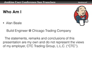 The presentation by Alan Beale at the Jenkins User Conference discusses the use of Job DSL and System Groovy for automating bulk updates in Jenkins job configurations. It highlights how Job DSL can streamline job creation with a Groovy language, while System Groovy scripts can automate repetitive tasks efficiently. The talk concludes with insights on creating a parameterized job generator and the significance of structured variations in jobs.
