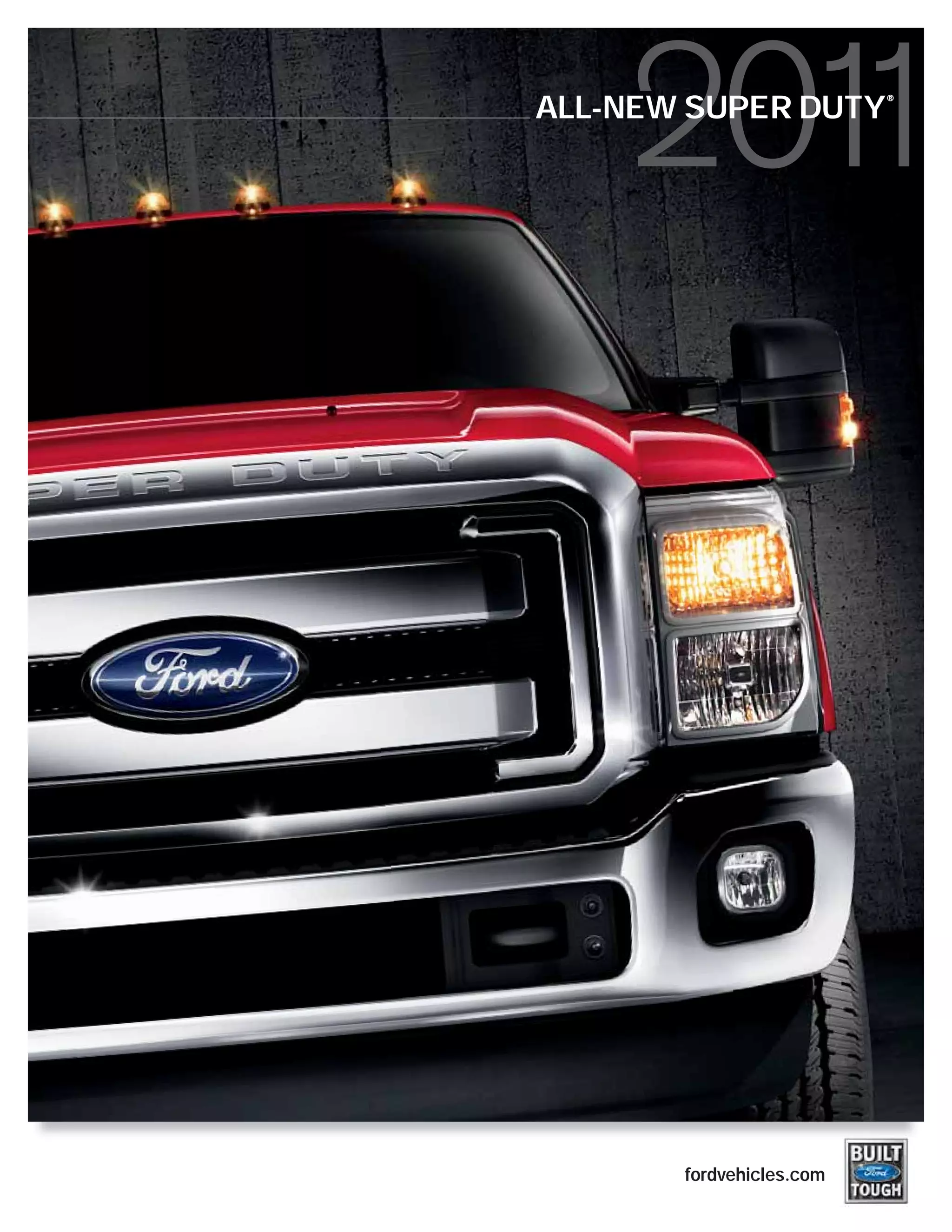 The document summarizes the new 2011 Ford Super Duty pickup truck. It highlights the new more powerful 6.2L gas and 6.7L Power Stroke turbo diesel engines that provide greater power and improved fuel economy. It also emphasizes the durability and reliability of the Super Duty through extensive testing, as well as its best-in-class towing, payload, and fuel economy capabilities. Additionally, it lists several exclusive features of the Super Duty like the LCD productivity screen and tailgate step.