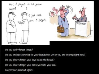 The document discusses different techniques for enhancing memory, including mnemonics, the link and story method, the journey system, and the number/rhyme mnemonic. It also covers the different types of memory, including sensory, short-term, and long-term memory. Finally, it emphasizes that knowing how to enhance memory through these techniques can provide "super power memory" that helps entrepreneurs interact appropriately and build good business relationships.