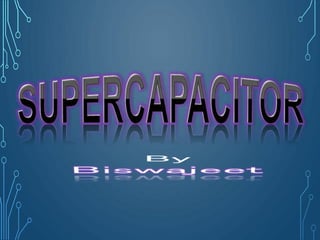 Supercapacitors are electrochemical capacitors that can store and deliver energy at high rates. They have a higher energy density than traditional capacitors. A supercapacitor was first developed in 1947 using porous carbon electrodes, though the double-layer storage mechanism was unknown at the time. Supercapacitors have advantages over batteries like high charge/discharge rates, little degradation over hundreds of thousands of cycles, and high cycle efficiency. However, their energy density is lower than batteries and voltage varies with stored energy. Applications include transportation, backup power systems, and consumer electronics.