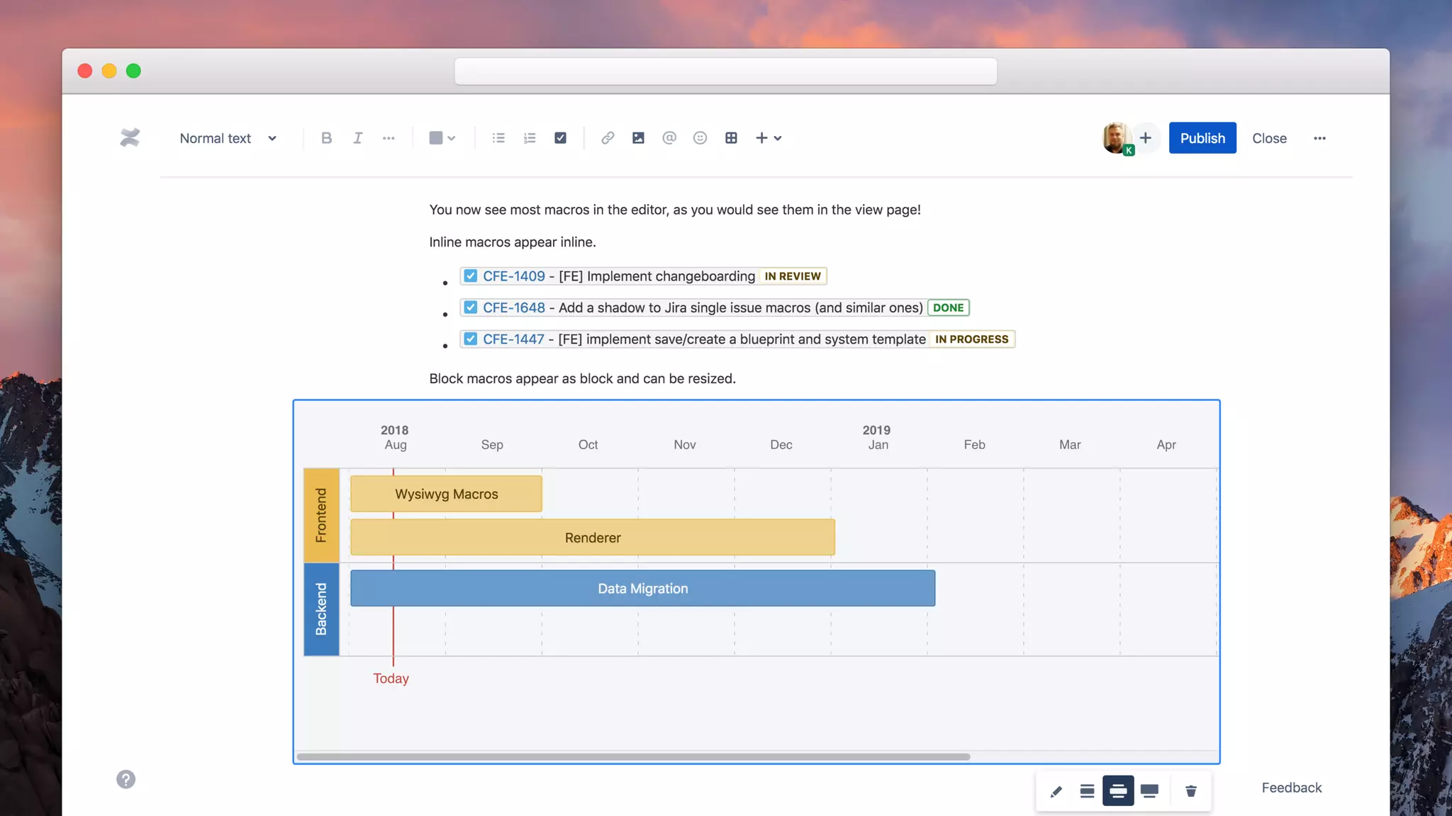 The document outlines the features and capabilities of the Confluence editor, specifically focusing on the role of superusers and admins in creating and customizing content through templates, macros, and integrations like Splunk. It emphasizes how superusers can enhance collaboration by automating complex pages while admins play a crucial role in configuring the instance and managing permissions. Additionally, it highlights the importance of using dynamic content macros to aggregate and control data effectively.