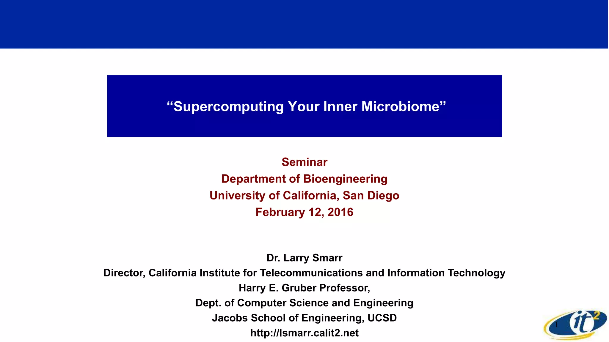 The document summarizes a seminar given by Dr. Larry Smarr on supercomputing the human microbiome. Some key points: