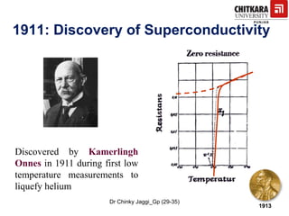 - Superconductivity was discovered in 1911 by Kamerlingh Onnes during experiments to liquefy helium below 4 K (1).