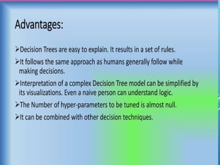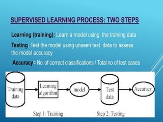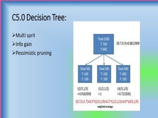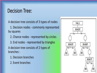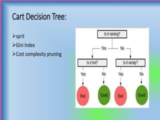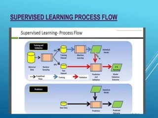 The document discusses supervised and unsupervised machine learning techniques, focusing on unsupervised models like K-means clustering and hierarchical clustering, as well as the Random Forest algorithm. Random Forest is an ensemble learning method that utilizes bagging and feature bagging to create a more accurate model through multiple decision trees. It highlights the advantages, such as versatility and ease of understanding, alongside disadvantages like increased model complexity with more trees.