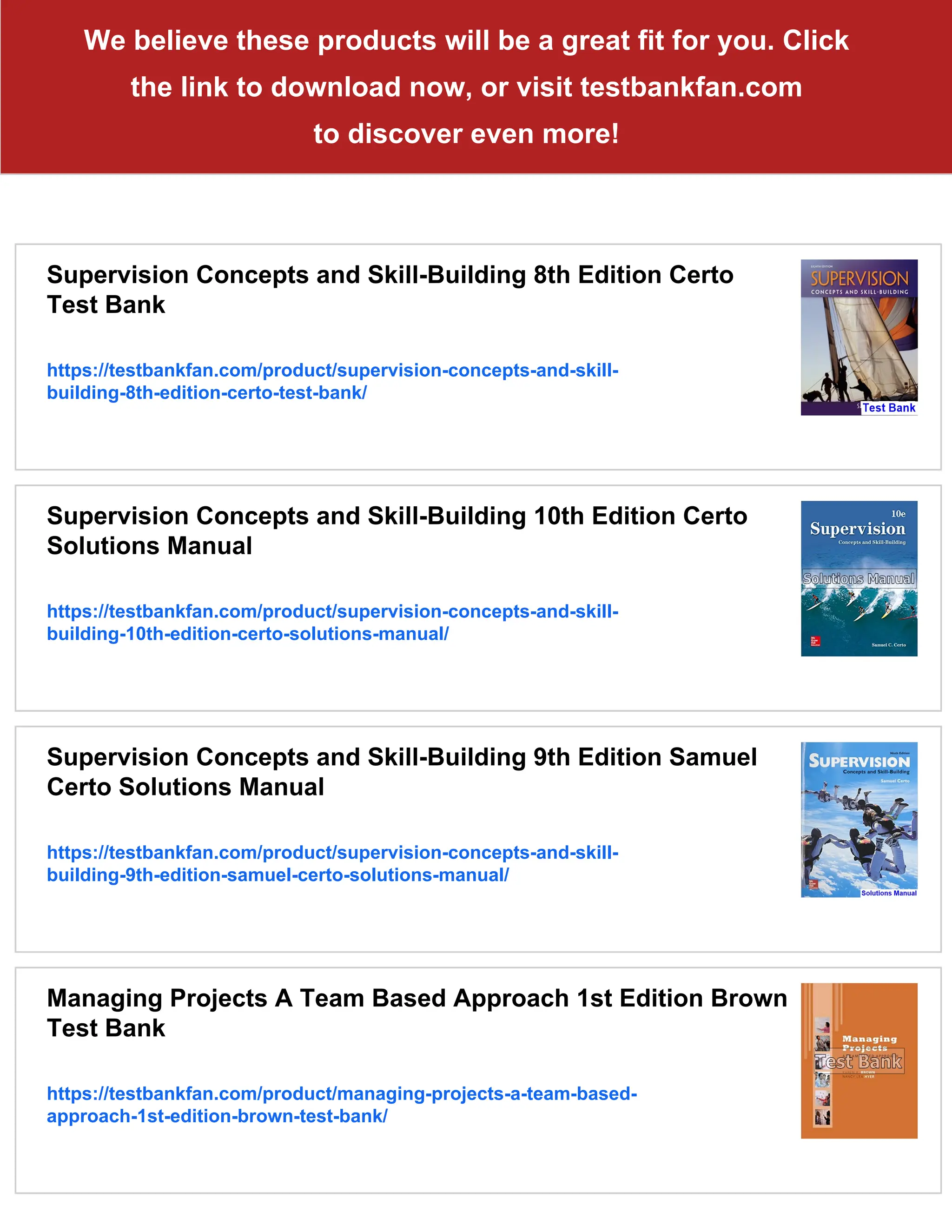 Supervision Concepts and Skill-Building 8th Edition Certo Solutions Manual
