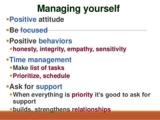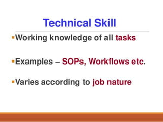 This document discusses supervisory skills in the nuclear industry. It provides information on the roles and responsibilities of supervisors, including supervising work to ensure it is done correctly and safely. It outlines important skills for supervisors such as communication, decision making, managing change, and motivating teams. It also discusses what makes a good supervisor, including fostering trust, being supportive and consistent. The document emphasizes that supervisors in the nuclear industry must have technical knowledge relevant to the work being supervised and reinforce standards to ensure work is done properly. Overall it provides guidance on the key responsibilities and skills required of supervisors in the nuclear industry.