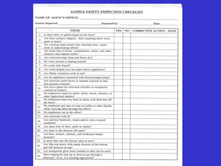 This document discusses supervisory responsibilities related to safety. It covers topics like conducting safety meetings and investigations, assisting with job safety analyses, maintaining equipment and work areas, providing training, and supervising employee tasks. It emphasizes the importance of safety training for supervisors and employees, conducting inspections, documenting meetings and investigations, and using tools like job safety analyses to improve safety. Supervisors are responsible for ensuring safety compliance and accident prevention through activities such as training, inspections, investigations, and documentation.