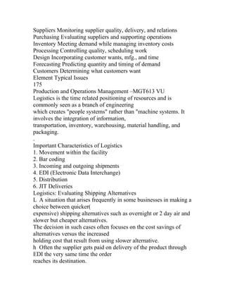 Supply chain management aims to improve operations, manage increasing costs and pressures, and leverage globalization through better coordination across the chain. It involves functions like logistics, purchasing, inventory, and customer relationship management. Key benefits include lower inventories and costs, higher productivity, and greater agility. However, integration challenges and variability pose risks to effectiveness. Metrics like delivery time, flexibility, and information velocity are used to measure performance. Collaborative planning helps improve forecasting accuracy through information sharing.
