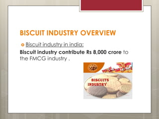 This document discusses distribution and supply chain management for biscuit manufacturing. It provides an overview of the biscuit industry in India and the 4 P's of marketing for biscuits - product types, pricing ranges, widespread placement, and ground-level promotion. Key aspects of biscuit supply chains addressed include ensuring the right inventory levels are in the right places, using integrated logistics, intensive distribution strategies, factors for selecting one or two-level distribution channels, and technology like ERP software. Suggestions are provided for biscuit manufacturers to take a 360-degree approach to optimizing their supply chains.