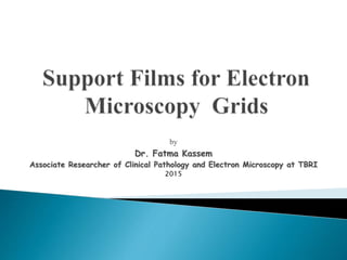 The document provides a comprehensive guide on preparing electron microscopy (EM) grids, detailing the various types of grids, their materials, methods for preparation, and the importance of cleaning protocols. It outlines the characteristics and applications of different support films, including formvar and pioloform, and specific techniques for coating grids to ensure high-quality specimens for transmission electron microscopy (TEM). Additionally, it highlights the precautions needed during preparation and chemical handling, emphasizing the critical role of films and grids in the preservation and observation of specimens under electron beams.