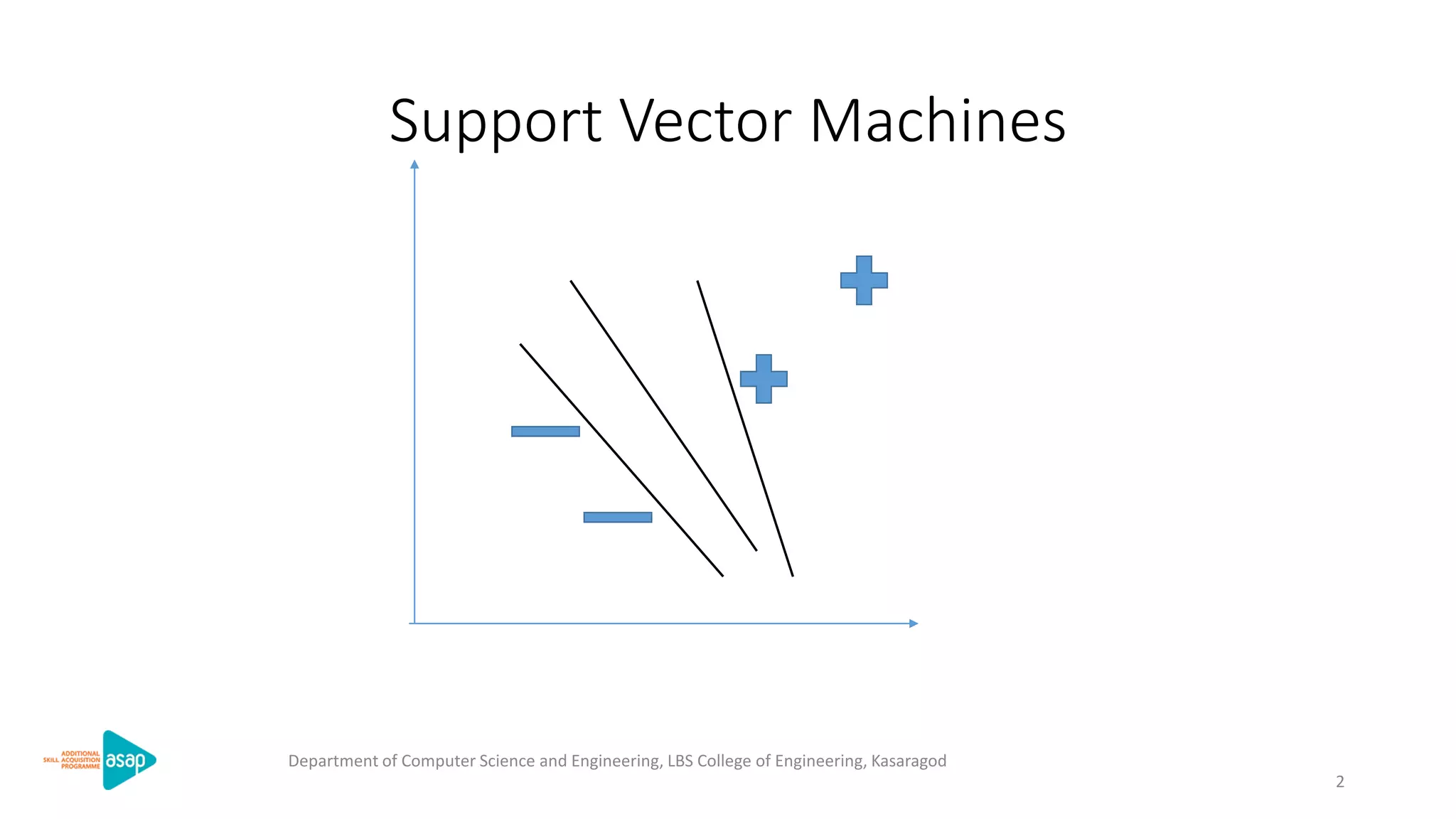 The document discusses support vector machines (SVMs), a supervised machine learning algorithm used for classification and regression. It describes how SVMs find the optimal separating hyperplane that maximizes the margin between the two classes of data points. The document provides the optimization formulation using Lagrange multipliers to find the separating hyperplane and defines the decision function to classify new data points. It also includes an example applying SVMs to classify a sample dataset.