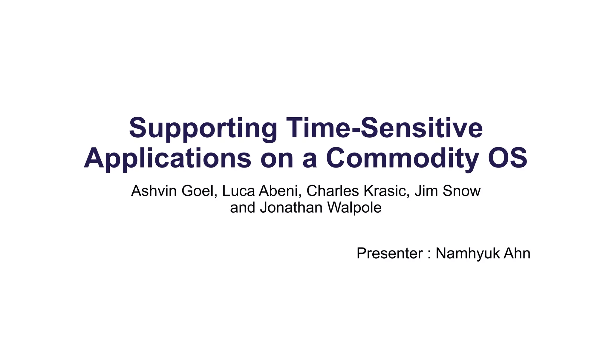 1) The document discusses Time-Sensitive Linux (TSL), which aims to support time-sensitive applications on commodity operating systems like Linux.