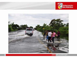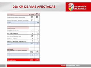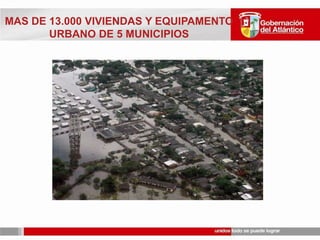 TOTAL DANMIFICADOS CAUSASDIVERSASAREA DEL ATLANTICO: 3.388 KM 220 DE LOS 22 MUNICPIOS AFECTADOSTOTAL AFECTADOS EN DEPARTAMENTO32.000 FAMILIAS - 158.100 PERSONAS