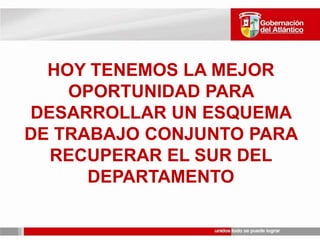 HOY TENEMOS LAMEJOR OPORTUNIDAD PARA DESARROLLAR UN ESQUEMA DE TRABAJO CONJUNTO PARA RECUPERAR EL SUR DEL DEPARTAMENTO
