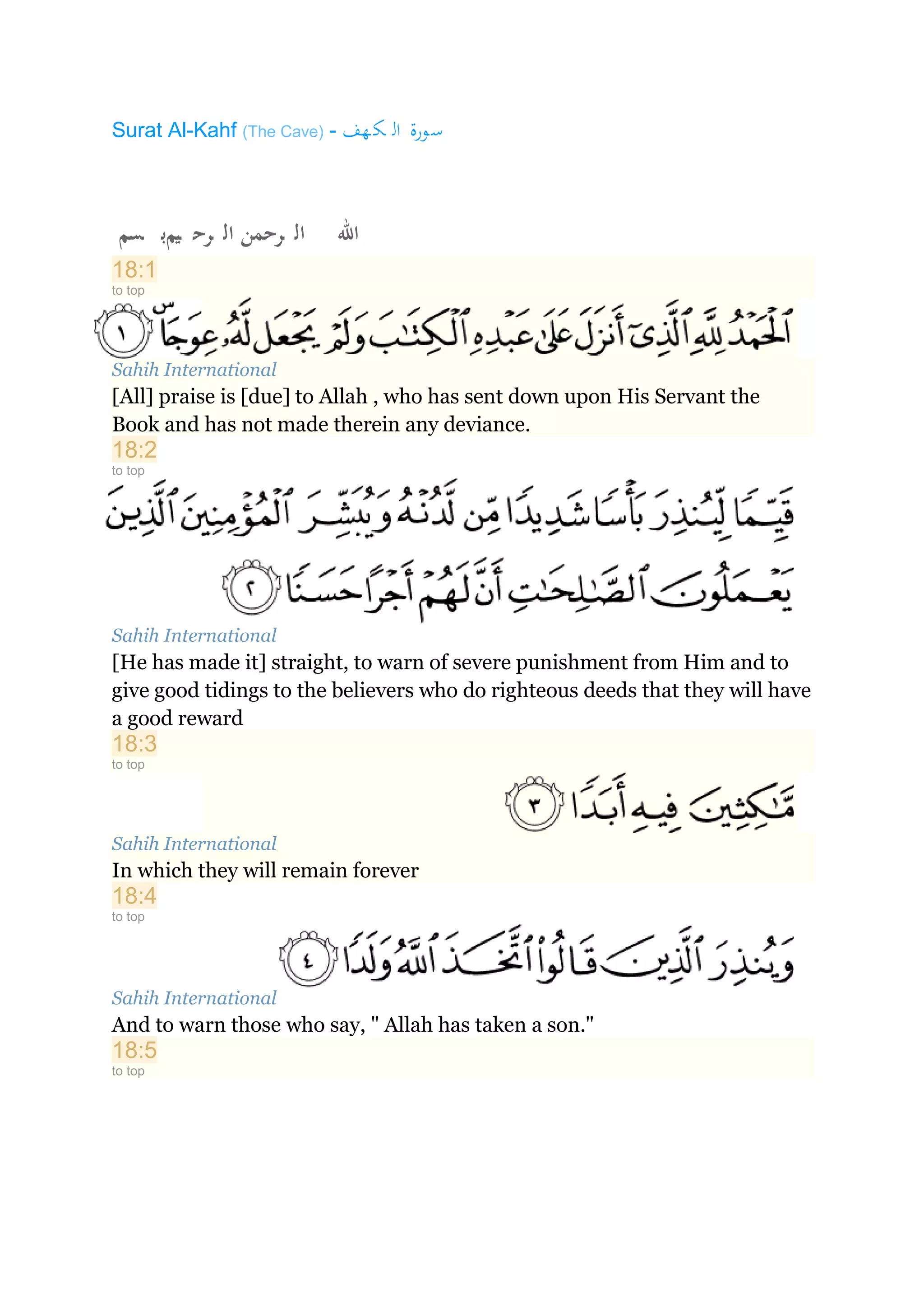 This passage summarizes Surah Al-Kahf (Chapter 18) from the Quran. It discusses several topics in 3 sections: