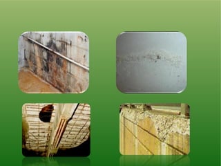 The document discusses different types of waterproofing for buildings. It describes below grade waterproofing systems like cementitious coatings and liquid applied membranes. It also covers above grade waterproofing and roof waterproofing systems. Specific products are mentioned for different applications along with their properties and coverage details. The document provides information on surface preparation methods before waterproofing and guidelines for application of waterproofing systems.