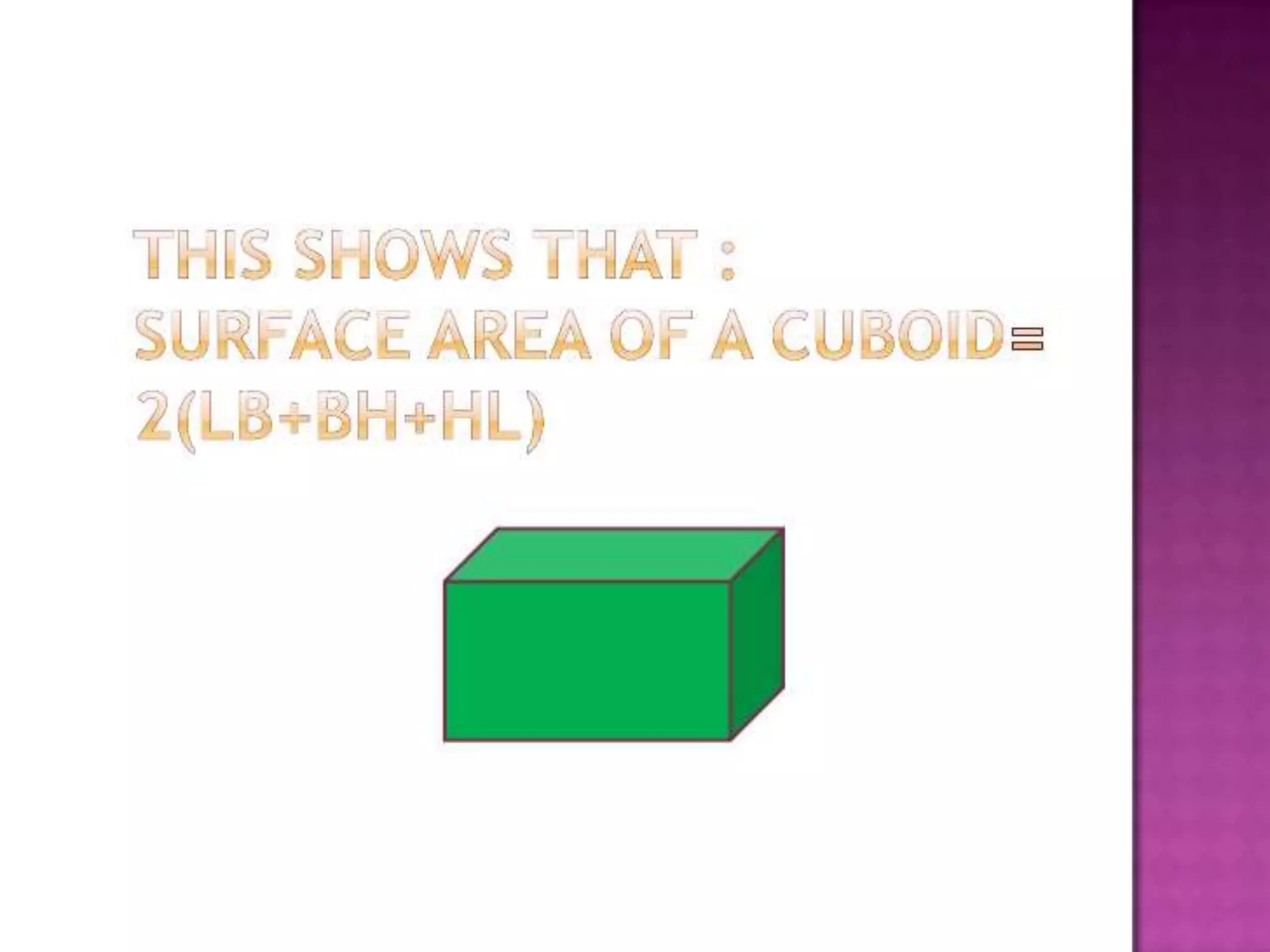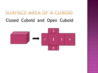 This document is the original work of students from Class 10 at Kuwait Indian School during the 2014-2015 academic year. It introduces various 3D shapes like cubes, cuboids, cylinders, cones, spheres, hemispheres and frustums. It defines surface area as the total area of faces and curved surfaces, and volume as the amount of space inside a solid figure. The students thank their teacher Mrs. Leena Saji for the opportunity to do this presentation and research 3D shapes.