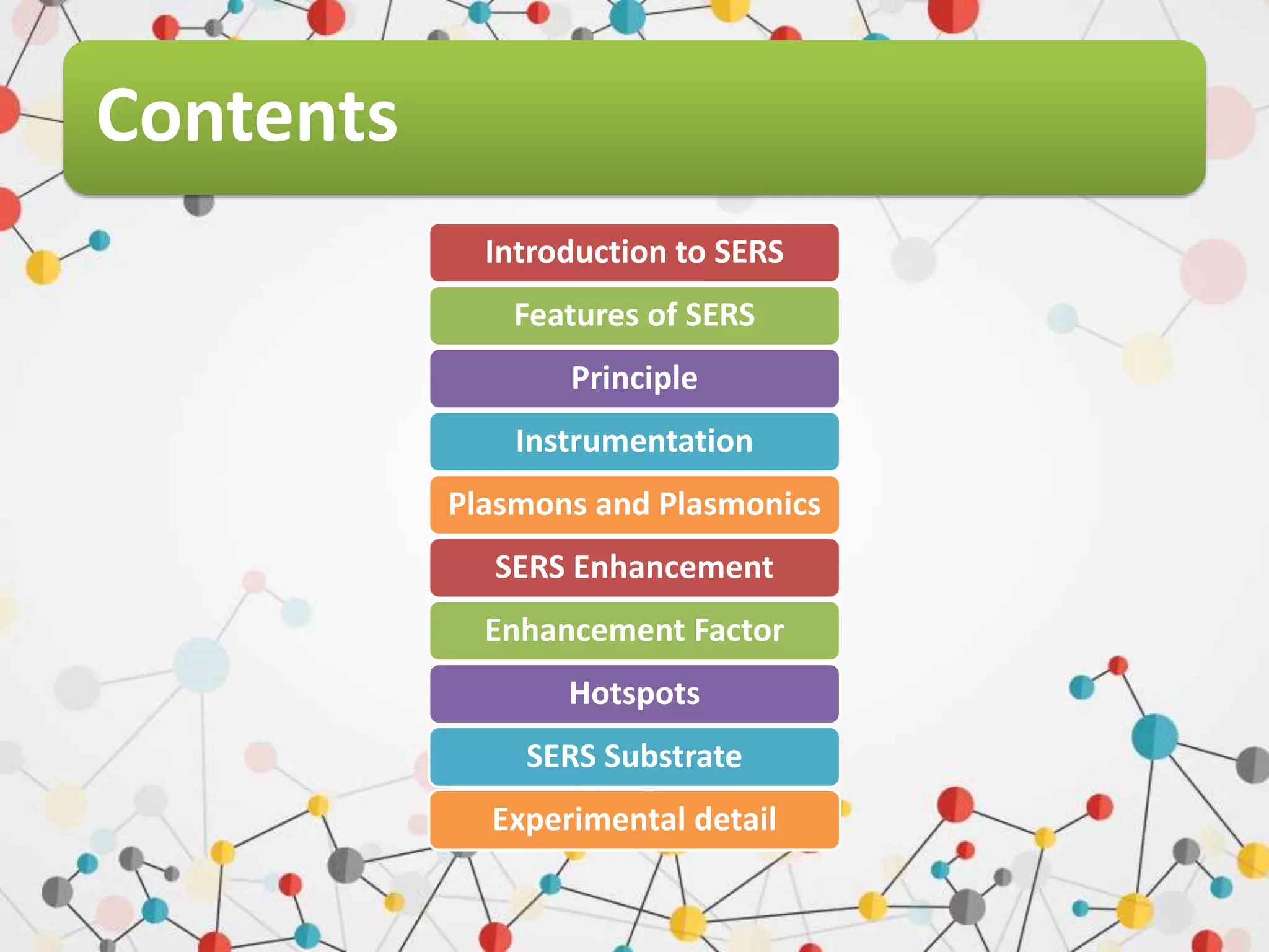 Surface enhanced Raman spectroscopy (SERS) provides greatly amplified Raman signals from molecules located near nanostructured metal surfaces, such as gold or silver. It works by taking advantage of localized surface plasmon resonances in these metals that can enhance the electromagnetic field in the vicinity of the surface by many orders of magnitude. This enhanced field can increase the normally weak Raman signals by factors of up to 1011, allowing single-molecule detection. SERS relies on both electromagnetic and chemical enhancement mechanisms to amplify Raman scattering.