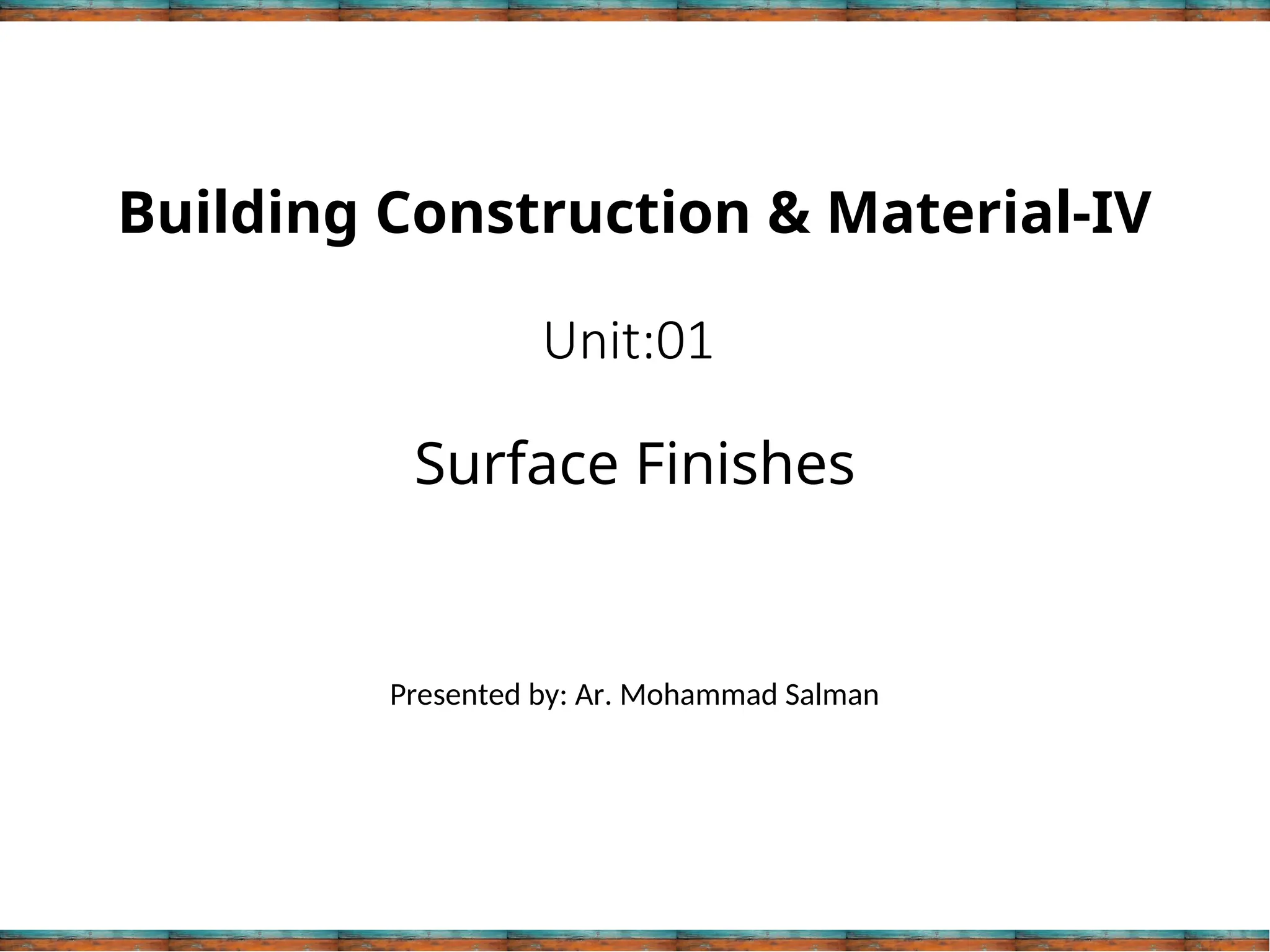 SURFACE FINISH OF MS UNIT 1 BUILDING CONSTRUCTION 1. 2. 3.